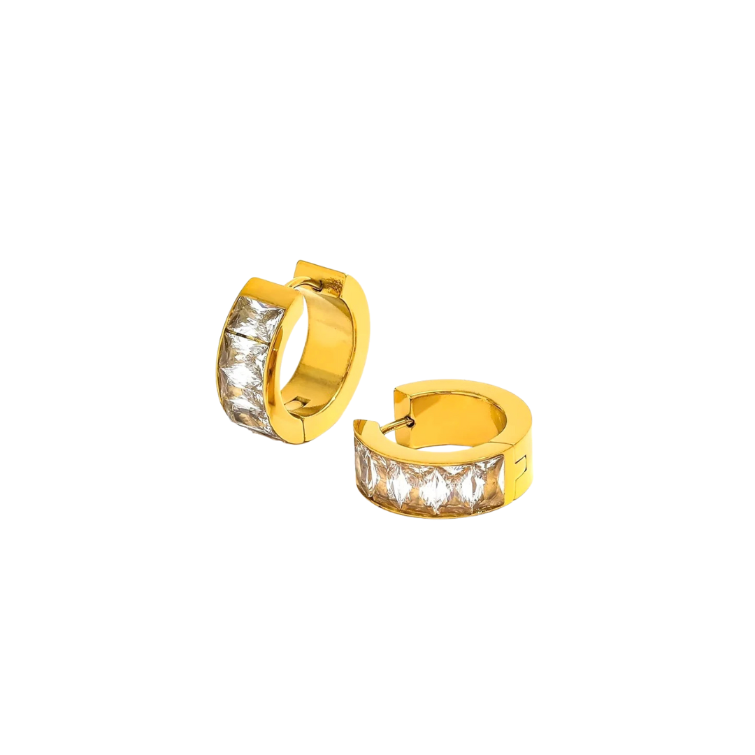 Meet Raye, our half pave zircon huggie, lightweight but luxe making them ideal for everyday. These are the perfect pair of earrings to throw on for when you're running errands or going to the gym - you'll always look put together with these on.
